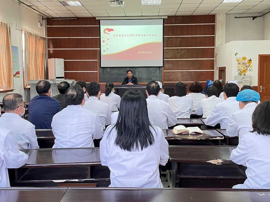 4月13日下午,校医院党总支在五楼会议室召开2022年度党建工作会议,全体党员参会,党总支书记石军红主持会议。
