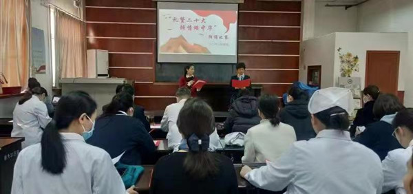 1月10日下午,校医院第一、第二党支部联合举办的“礼赞二十大 倾情颂中华”朗诵比赛在医院五楼会议室进行。党总支书记石军红出席活动并致辞。活动特邀党委组织部副部长常晓丽、党委宣传部副部长肖亮亮担任评委。