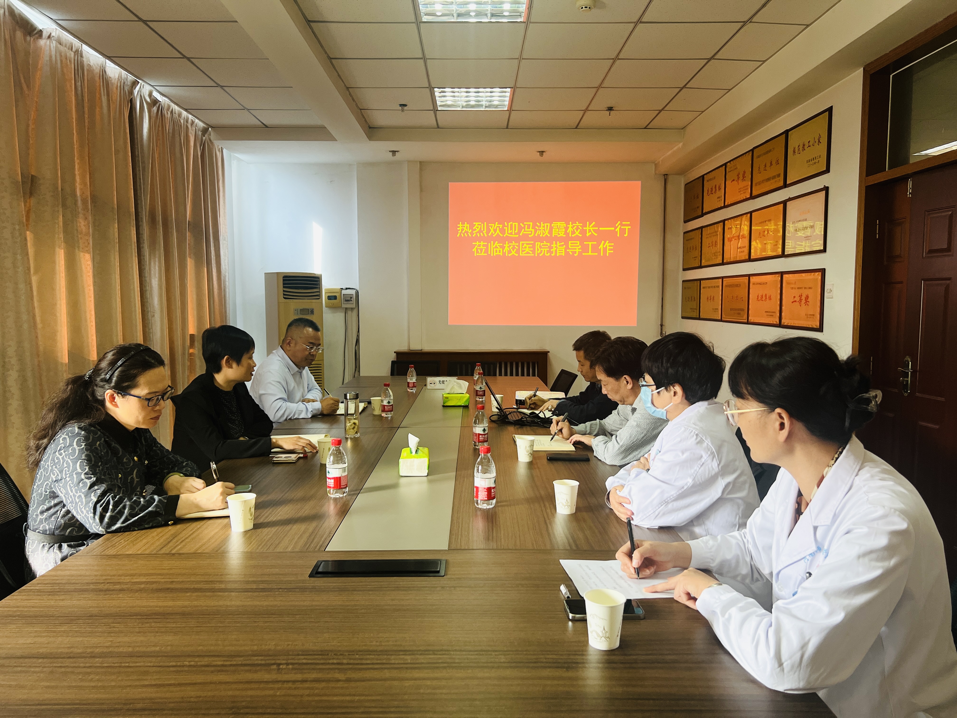 10月31日上午,校长冯淑霞到校医院调研指导工作,副校长聂国兴、校党政办副主任郭文芳陪同调研,医院党政领导班子参加。