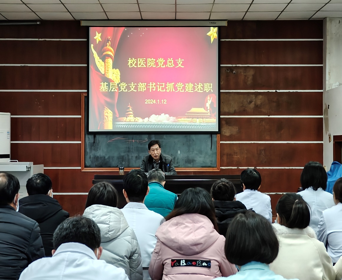 为深入贯彻落实党的二十大精神,落实学校党建工作重点任务,全面加强新时代高校党支部建设,压紧压实党支部书记抓党建的政治责任,进一步提升基层党支部书记履职尽责能力,有效发挥基层党组织政治核心作用和战斗堡垒作用,根据校党委工作要求,1月12日下午,校医院党总支在医院五楼会议室召开了2023年度基层党支部书记抓党建工作述职评议会。医院领导班子、党总支委员及全体党员参加会议。