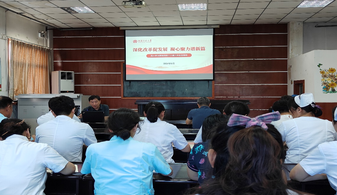 9月5日下午,校医院在五楼会议室进行党的二十届三中全会精神宣讲。党总支书记石军红作专题报告,医院全体党员及科级以上干部参加。