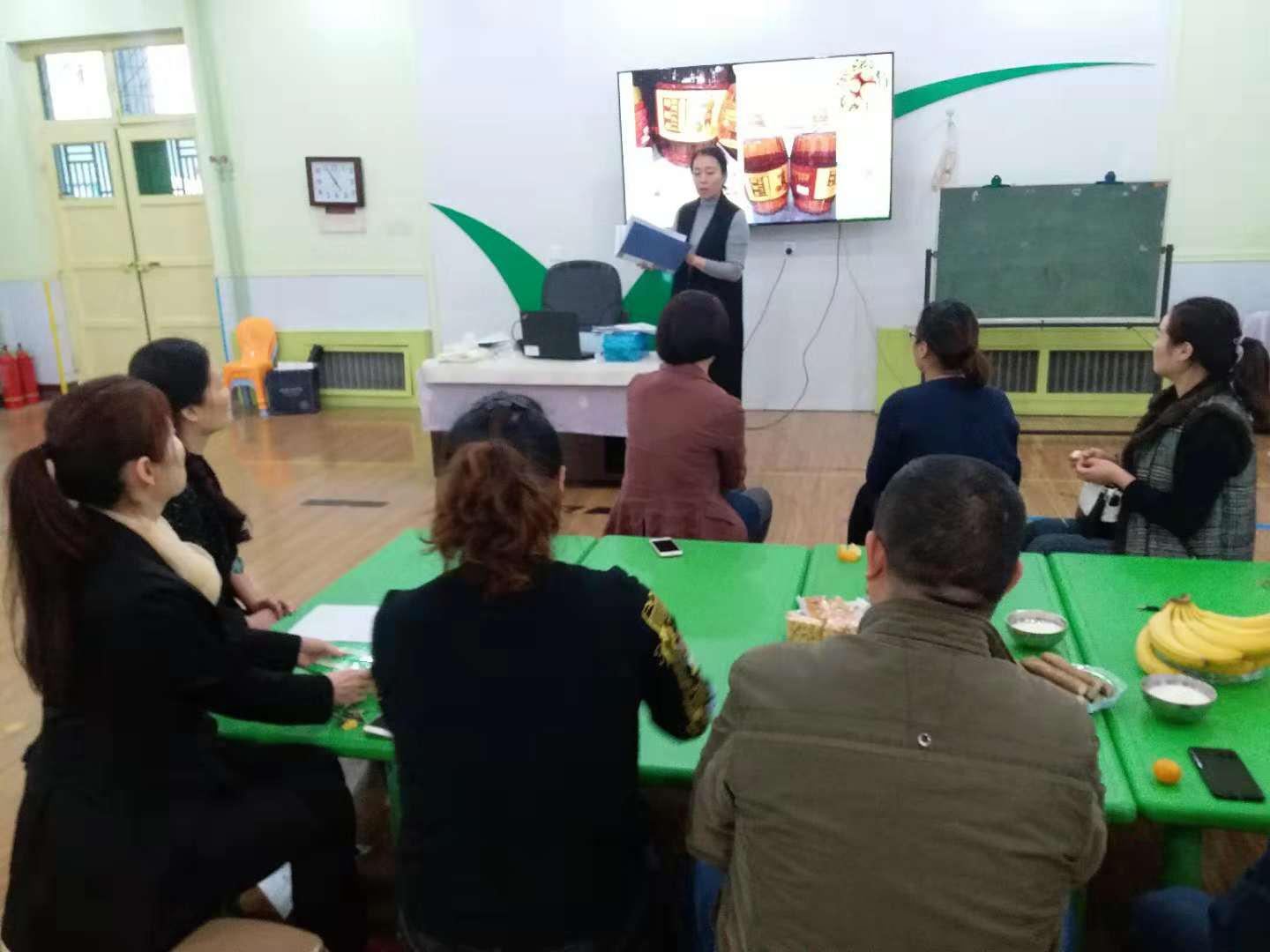 幼儿园副园长常利芹主持会议,她首先向各位家长介绍了硬件设施、伙房人员配备及幼儿园膳食管理概况;再由保健老师讲解食材的合理搭配、食谱的科学制定;伙房厨师长介绍食材的做法,如何合理的配料、要求严格、并不断的创新菜式;采购员介绍食材的采购地点、食材的种类、出示台账。