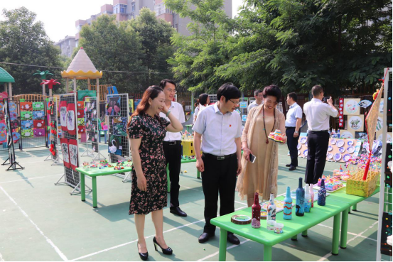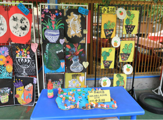 演出结束后,家长带领孩子聚集画展厅,本次画展分别来自我园小小班、小班、中班、大班,四个年级所有幼儿的作品。一幅幅画作,利用废旧材料设计组合、色彩鲜艳、内容丰富、表现形式多样,件件都是艺术品。画展展出期间,吸引了不少来园领导、幼儿以及家长们的眼球,获得了大家一致好评。看着这一幅幅绚丽多彩的画作,形式多样的手工,我们感动于孩子们随心所欲、天马行空般的畅想,更能感受着孩子们自信、灿烂、奔放的童心。把本次活动再次推向了高潮。