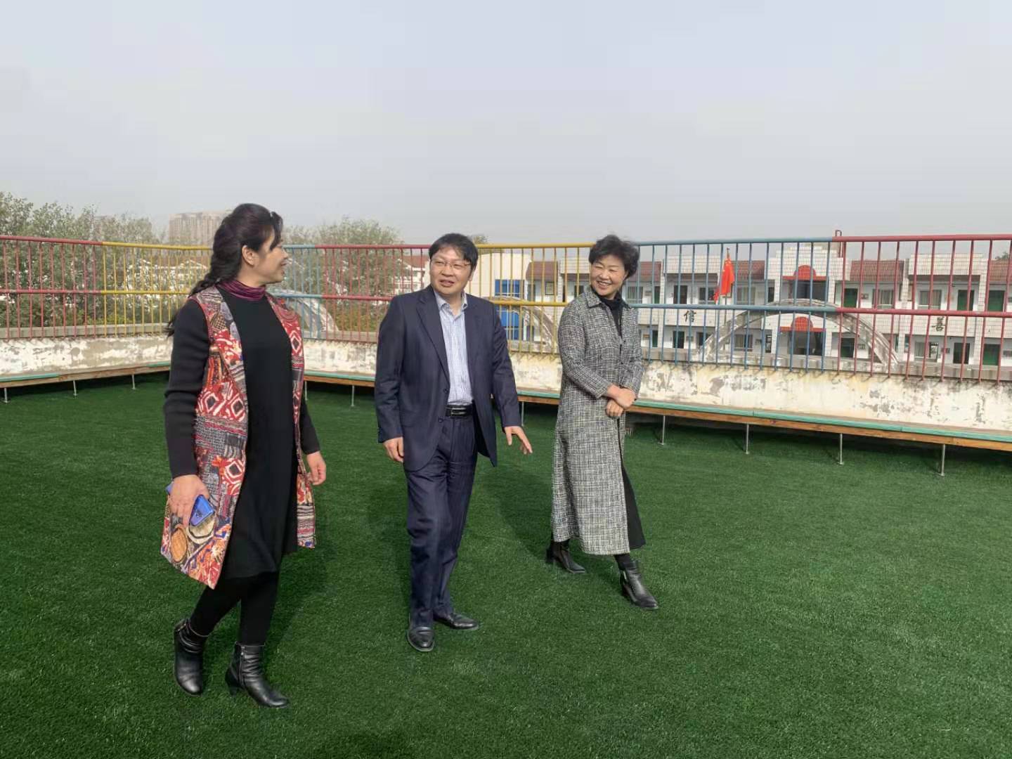 10月28日上午,伟德官网下载苹果版党委常委李学志副校长在校办主任白鑫刚的陪同下到幼儿园视察刚刚铺设完工的幼儿活动草坪。