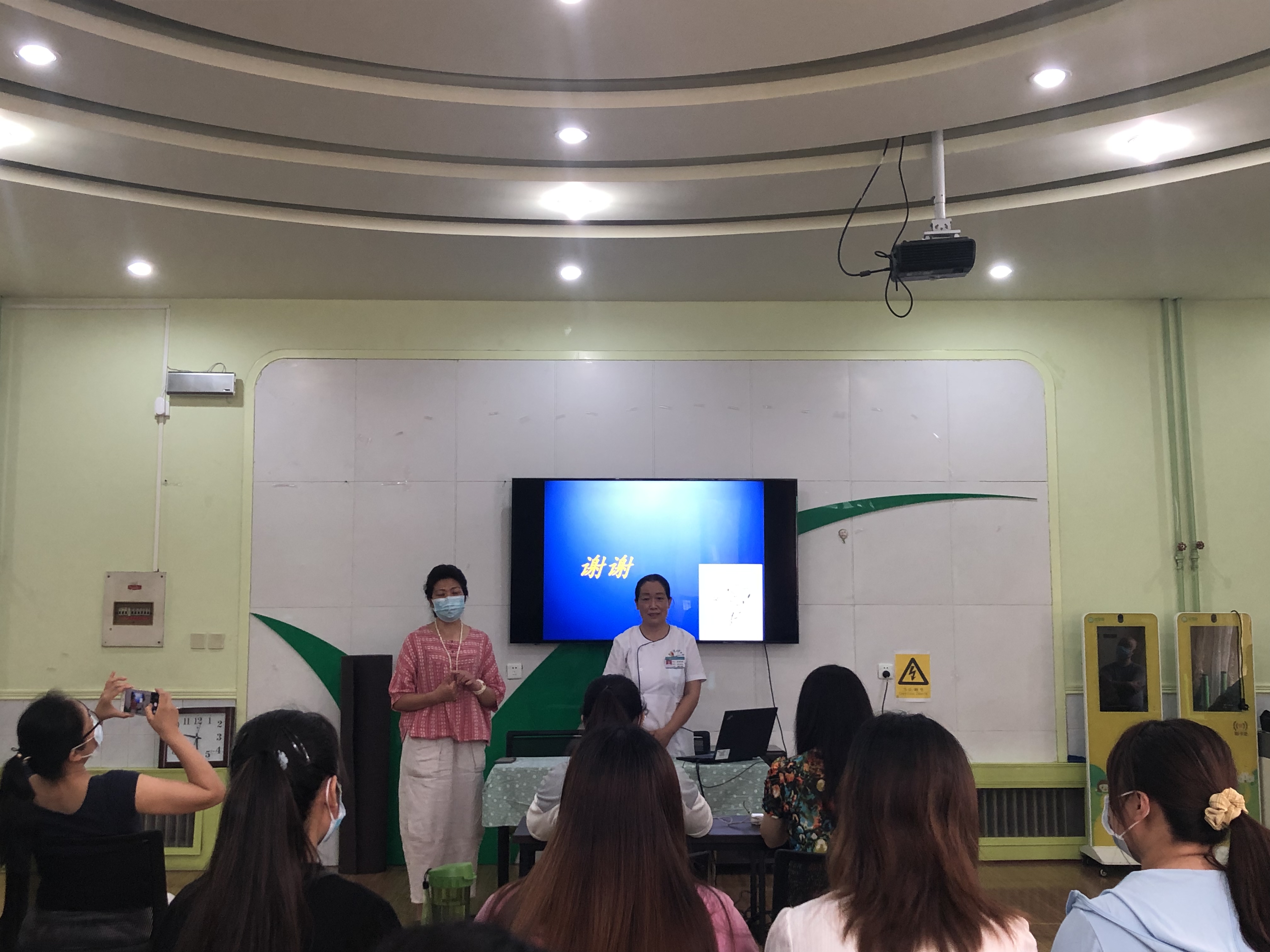 为科学有效防范疫情,切实保证全体师生的身体健康和生命安全,进一步加强开学后幼儿园疫情防控。7月3日上午,幼儿园有幸邀请我校校医院张院长(幼儿园特聘健康副园长)和田护士长,在音体室为幼儿园全体教师开展了《幼儿园卫生和消毒工作》的相关培训。