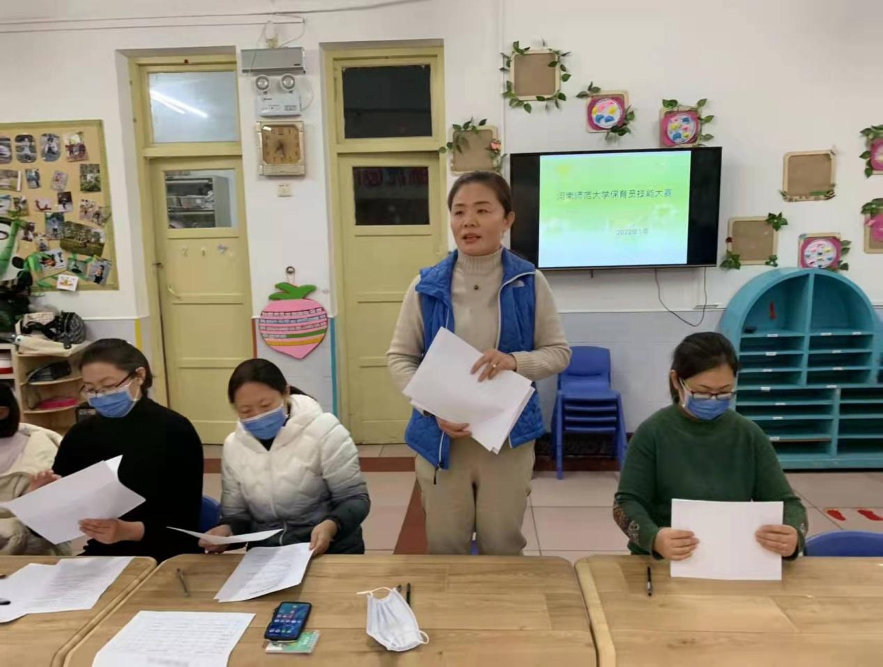 为进一步加强幼儿园保教工作水平,提高教师保育保健理论知识、规范操作技能,我园于2022年1月7日开展“保育员技能大赛”,比赛在副园长王贞的讲话中顺利拉开序幕。