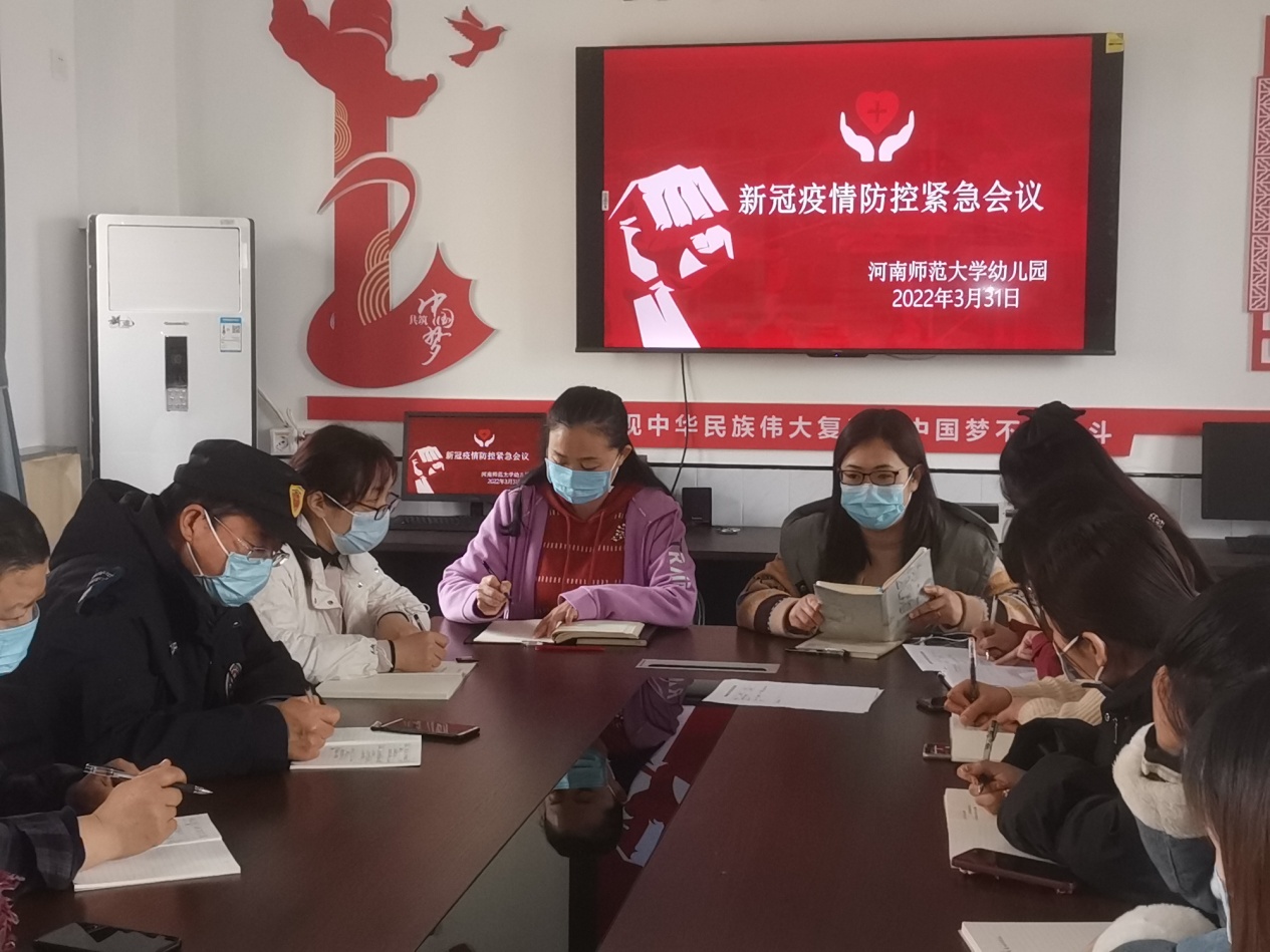 3月31日下午,幼儿园组织班主任教师、保健员、厨师长、保安队长召开疫情防控工作部署紧急会议。会议由副园长王贞主持,传达牧野区疫情防控会议精神,将各项工作做好、做实、做细。