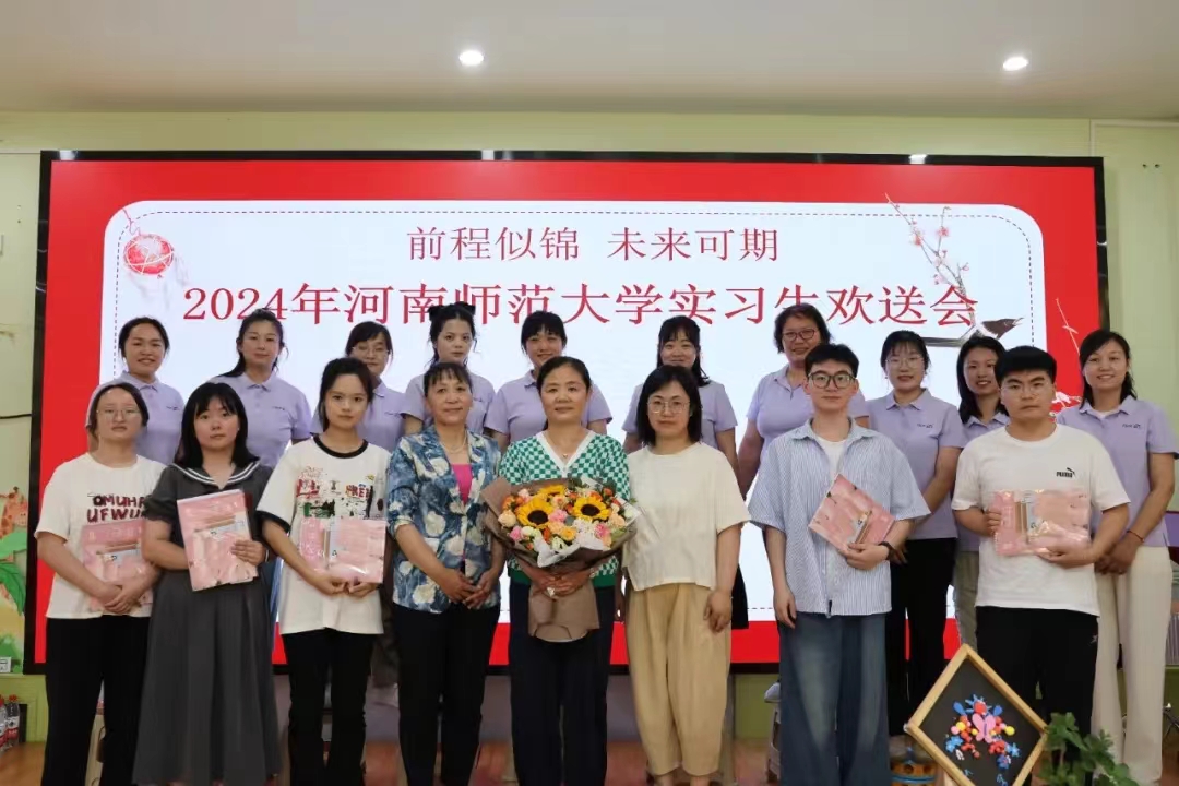 欢送会上,常园长肯定并表扬了实习生在实习期间各方面的表现,感谢实习生对孩子们的细心关爱、对班级老师的积极配合、对幼儿园工作的大力支持。希望她们能够在今后的生活中继续保持纯真、可爱,在教育的道路上不断学习,做好规划,走好人生的每一步。绽放青春的光彩,用拼搏铸就未来!
