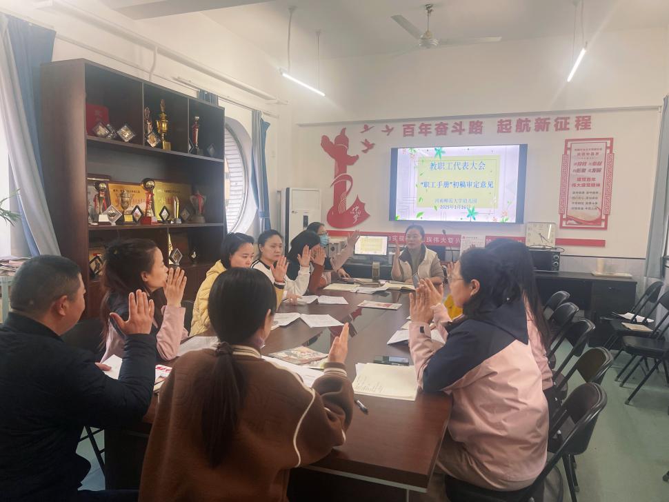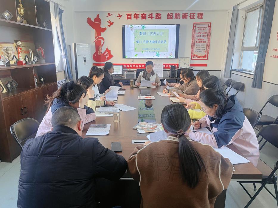为进一步加强幼儿园制度建设,认真落实依法办园行为,全面提升教职工综合素质,促进幼儿园高质量发展。2024年以来幼儿园组织骨干教师参与讨论拟定《伟德官网下载苹果版幼儿园教职工手册》,经多方努力2025年1月13日完成初稿,将全部内容打印发至教职工代表通读审议后于2025年1月16日下午,在党建室召开教职工代表大会,会议主要针对《伟德官网下载苹果版幼儿园教职工手册》内容修订展开讨论,重点从内容的准确性、实用性、完整性以及教职工的意见反馈,会议中大家对该手册内容进行修改补充,最后全体参会教职工代表举手表决,一致同意该手册的全部内容,会后将该手册带回班级,让全园教师进行学习。