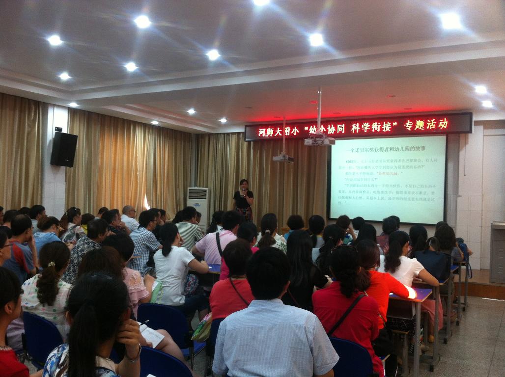 经幼儿园和师大附小领导班子友好协商,2016年6月16日下午四点,幼儿园组织百余名大班幼儿家长到师大附小四楼多功能厅参加了“幼小衔接”主题家长会,附属小学赵金红副校长从“幼小衔接”的重要性、一年级常见问题、帮助孩子做好入学准备、学习习惯的培养四方面为家长做了详细、认真的剖析,一个小时的专题讲座让家长进一步明确了如何帮助孩子顺利进入小学、如何帮助孩子尽快适应小学生活、如何帮助孩子养成良好的学习习惯,与会的家长认真倾听,进一步认识到家长配合的重要性。