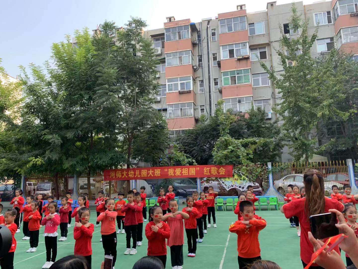 为弘扬爱国主义精神,营造浓郁的幼儿园节日文化氛围,9月30日下午幼儿园举行了大班“红歌润童心”百人红歌会活动。