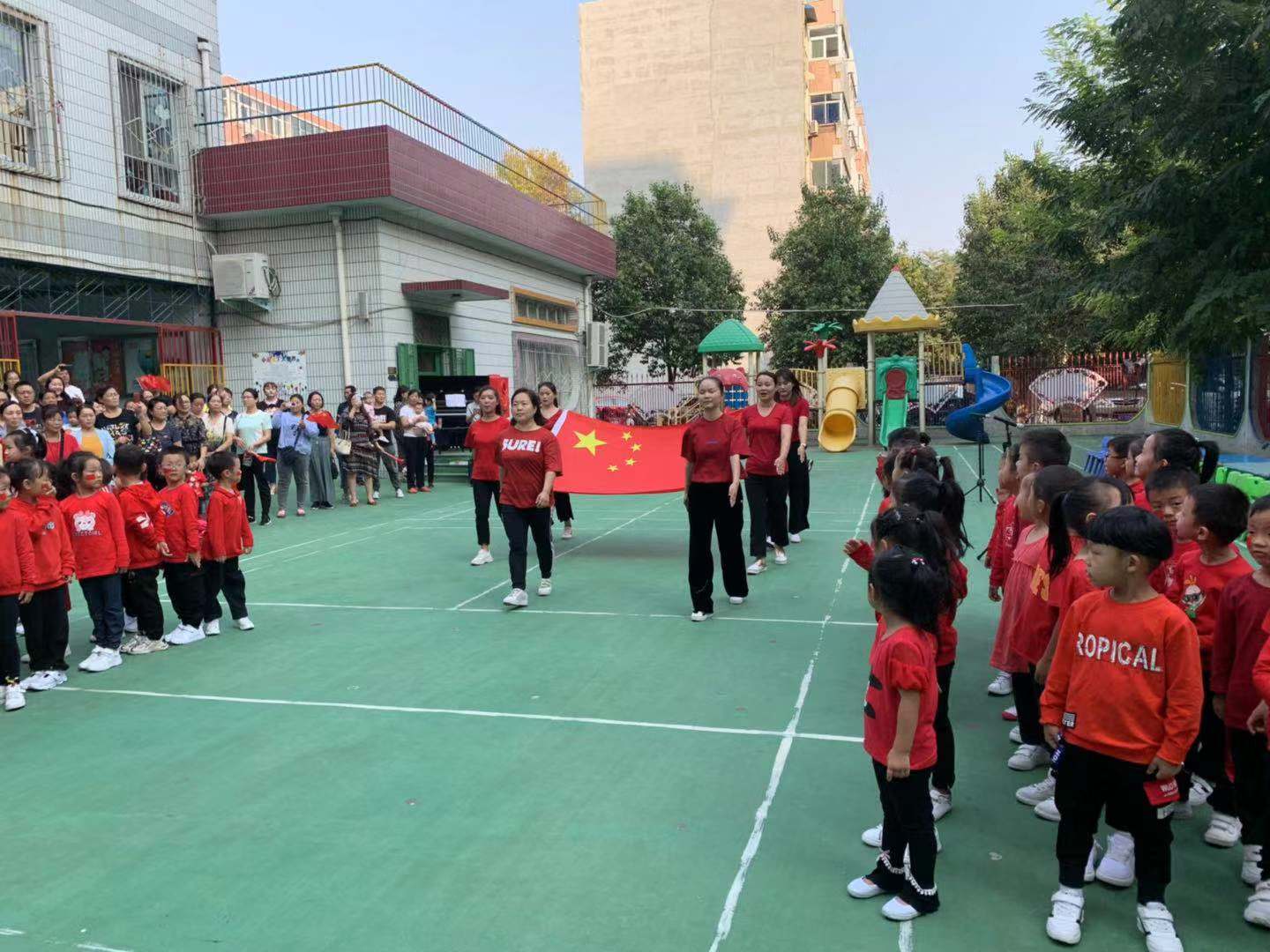 活动开始由大班全体教师护送国旗,鲜艳的五星红旗在家长和幼儿激情飞扬的国歌声中冉冉升起。“今天是你的生日……”、“没有共产党就没有新中国……”活动中一首首脍炙人口、催人奋进的经典红歌从孩子们的口中、心中唱出,大家舞动国旗,以优美的舞姿抒发着对祖国的热爱之情。孩子们的精彩表演获得家长们阵阵喝彩的掌声。