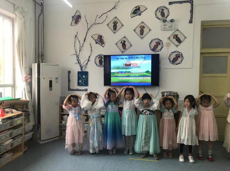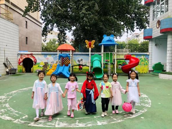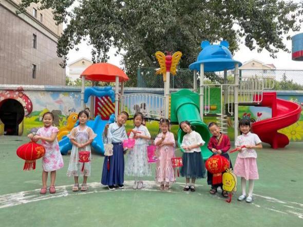 早晨孩子们身着汉服、洋溢着笑脸手执各式各样的灯笼来到幼儿园,成为秋日里最美的一道风景线。