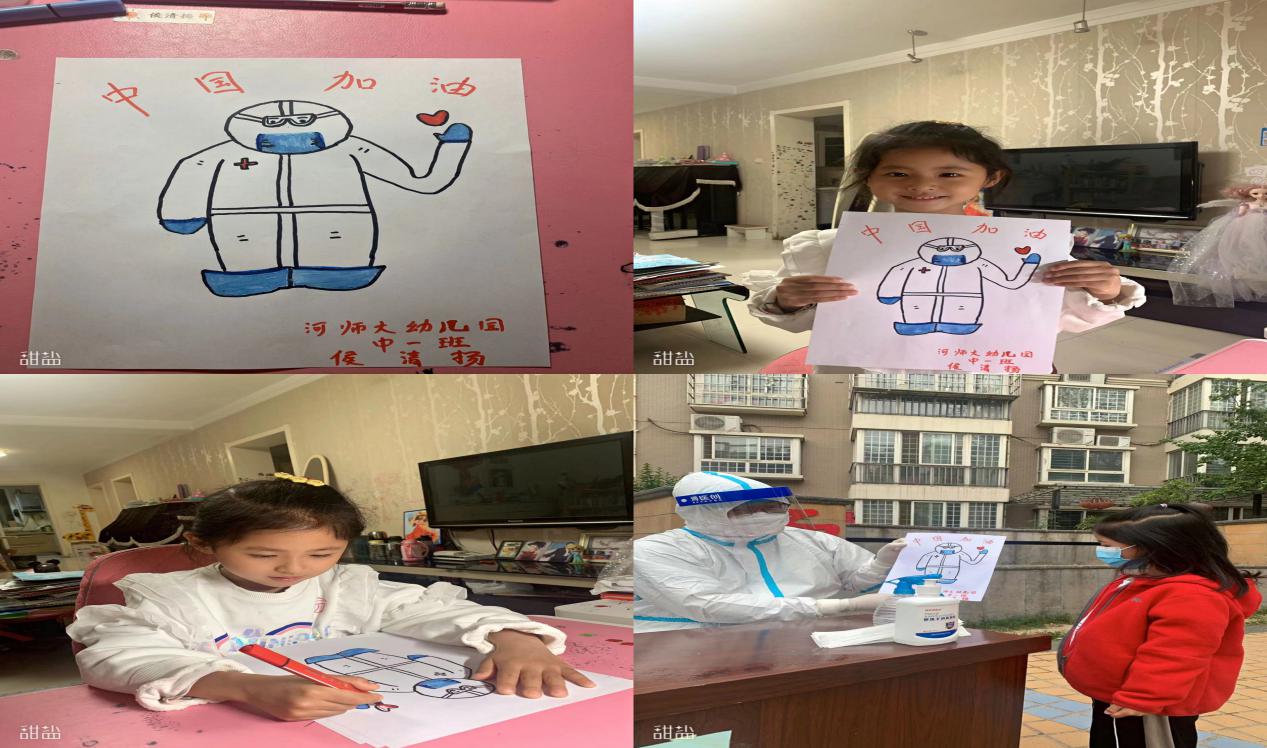 疫情的反扑,幼儿园的小朋友这周都停课在家,居家不聚集,是我们每个人应该配合的,看到辛苦工作的“大白”,河师大幼儿园中一班的小朋友和老师一起拿起画笔,致敬我们抗疫第一线的“大白”,您们辛苦了!辛苦的大白们,用血肉之躯筑起抗击疫情的钢铁长城。“大白”,就是新时代最可爱的人。在这个不平常的春天,我们向每一个大白致敬!