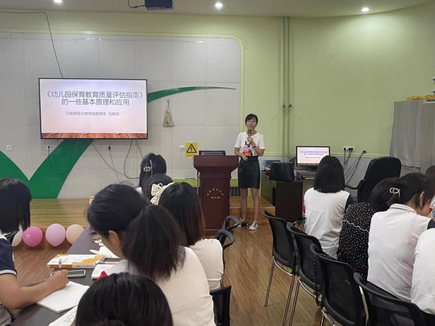 在石晓波教授的引领下,开展了“幼儿园保育教育质量评估指南的基本原理和应用”的专题培训,强化对幼儿园保育教育质量评估的科学规范指导,提高教师科学保教的水平和能力。