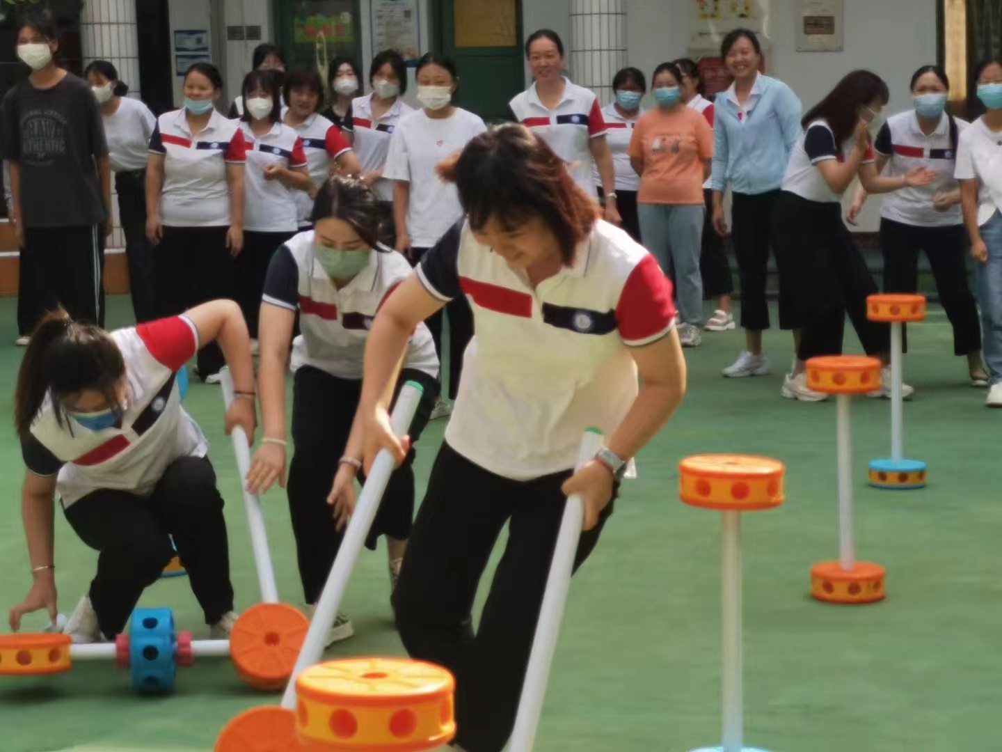 为丰富幼儿户外游戏活动,幼儿园引进“巧匠工坊”体育器材,在李想讲师的培训中,采取理论与实践相结合的方式,从人体运动结构、动作发展、运动技能特点、社会适应等方面进行讲解。教师在掌握器材功能的基础上,动手拼搭,体验自主构建户外游戏的乐趣。
