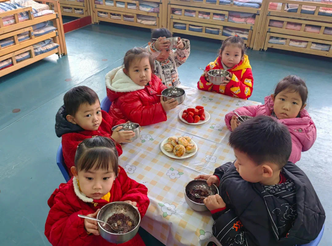 八方食物,调和万事如意,一碗腊八粥,熬出冬日温情,孩子们从认识食材、了解食物营养价值、共同体验熬制过程,一起品尝美味的腊八粥,感受香浓的节日氛围。