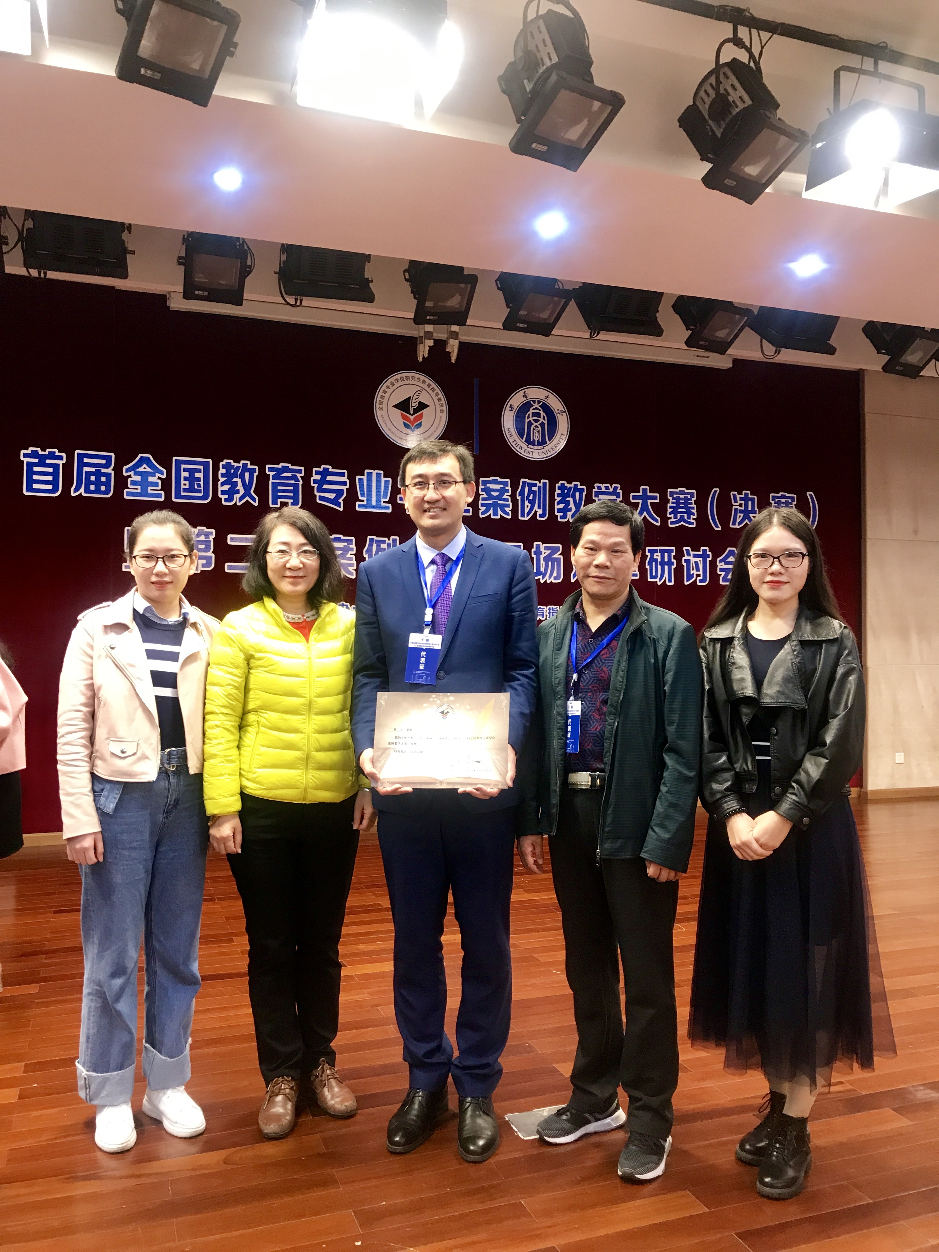 114日至6日,首届全国教育专业学位案例教学大赛(决赛)在西南大学落下帷幕,我校数学与信息科学学院青年教师董乐荣获一等奖。
