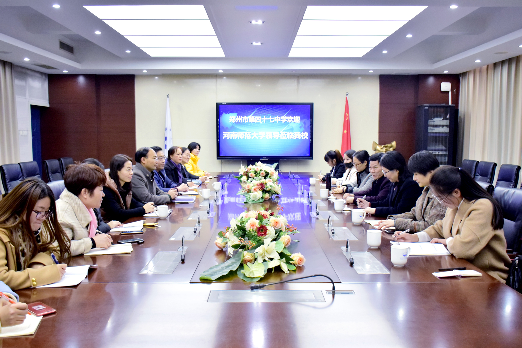 11月21日下午,研究生院副院长梁书斌、专业学位办主任刘瑞民、外国语学院教育硕士工作秘书王晔一行3人到郑州四十七中座谈,并看望校外指导老师及实习实践中的我校教育硕士。郑州四十七中副校长栗红涛、教务处主任展庆领、办公室主任崔杨柳及4名校外指导老师和8名教育硕士参加了座谈会。会议由栗红涛副校长主持。