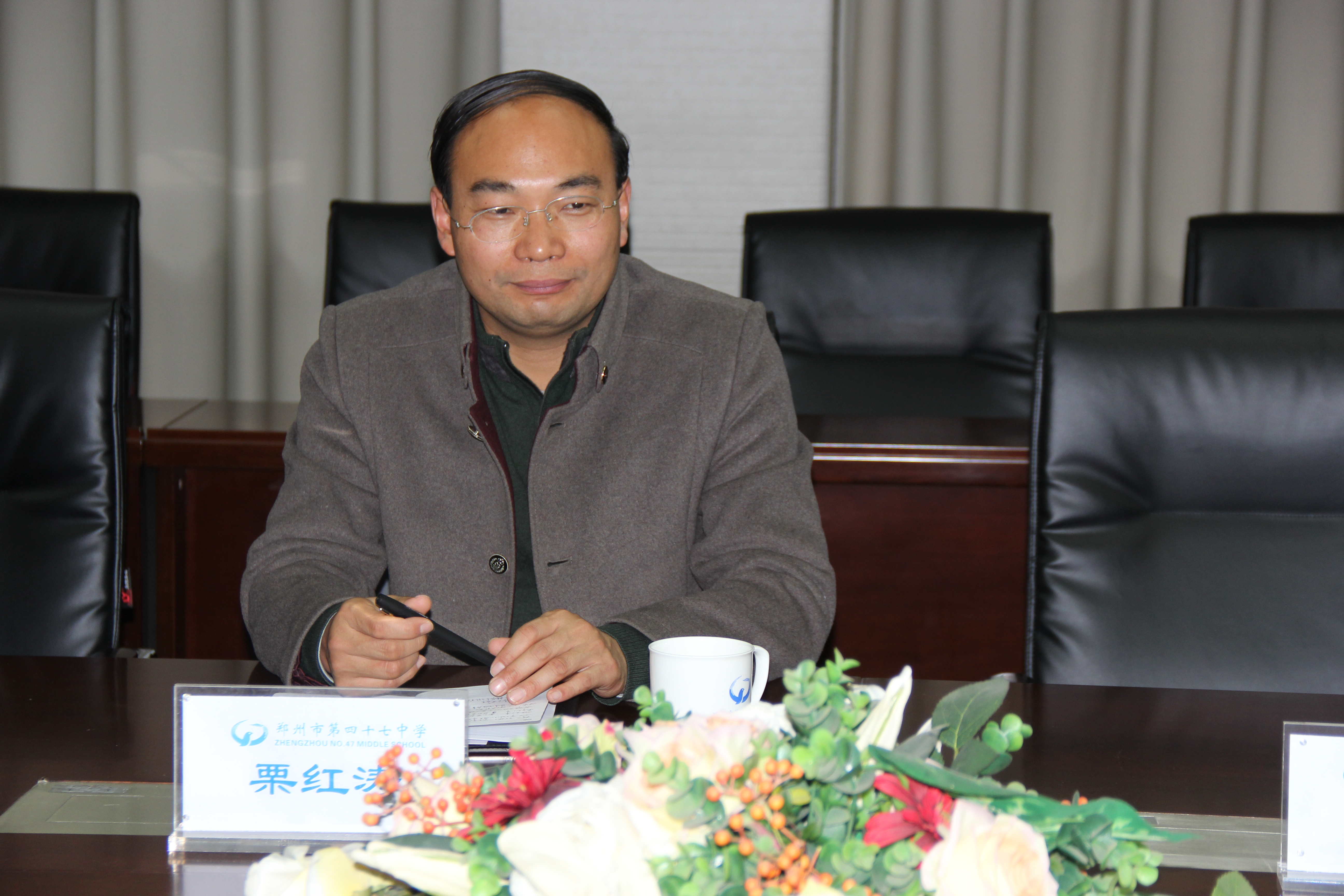 栗红涛首先致欢迎辞并介绍了郑州四十七中发展概况及办学特色,学校办学22年来,从一所普通中学发展到省级示范性高中,具有强大的师资团队及颇丰的教育教学成果。学校交通便利,校园环境优美,教育设施一流,绿树环绕,芳草铺茵,是一所矗立于城市中的花园式学校。他表示非常欢迎我校教育硕士来此进行实习、实践,并希望同学们对学校工作提出宝贵意见。
