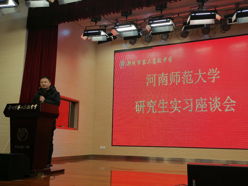 马春旺副院长做了总结发言,感谢郑州二中领导和老师对我校实习学生在学习、生活等方面的指导和帮助;马院长勉励同学们虚心向导师们学习教学理念、教学方式和方法,把理论知识用于实践工作中,圆满完成教学实践任务。并表示把二中学校老师的有意义的建议带回去好好研究,以便更好地做好专业学位研究生教育和实践工作。
