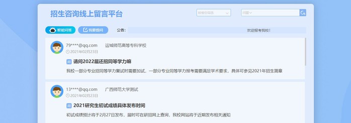 填写完相关信息后,点击【网站首页】—【智能问答】进行咨询