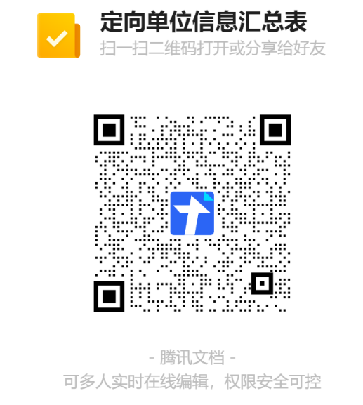 (二)扫描下面的二维码,打开腾讯文档按要求填写个人信息及定向单位名称,保存提交。截止时间为2021年4月18日下午15时前。