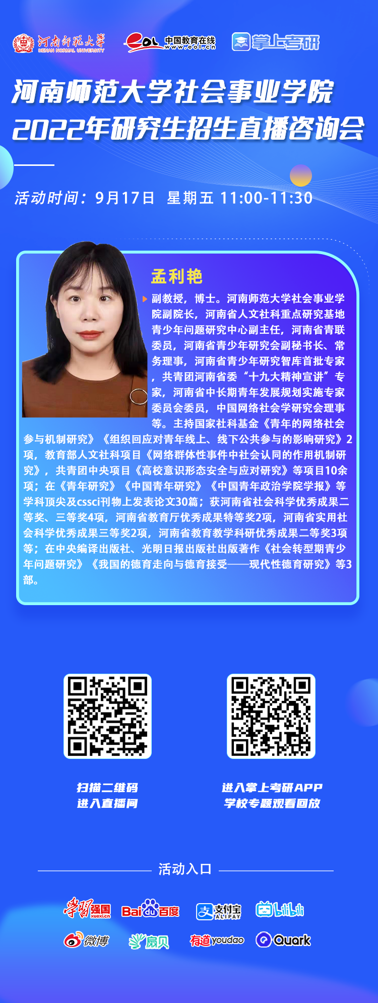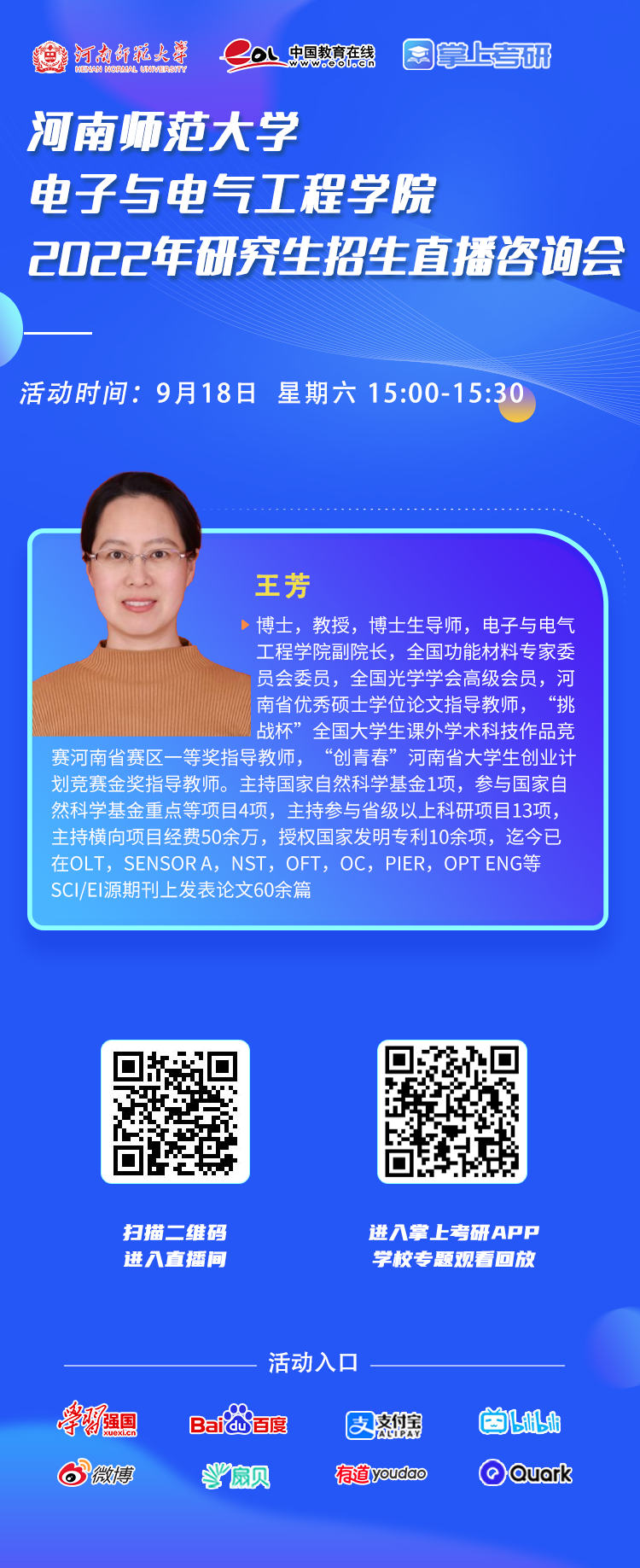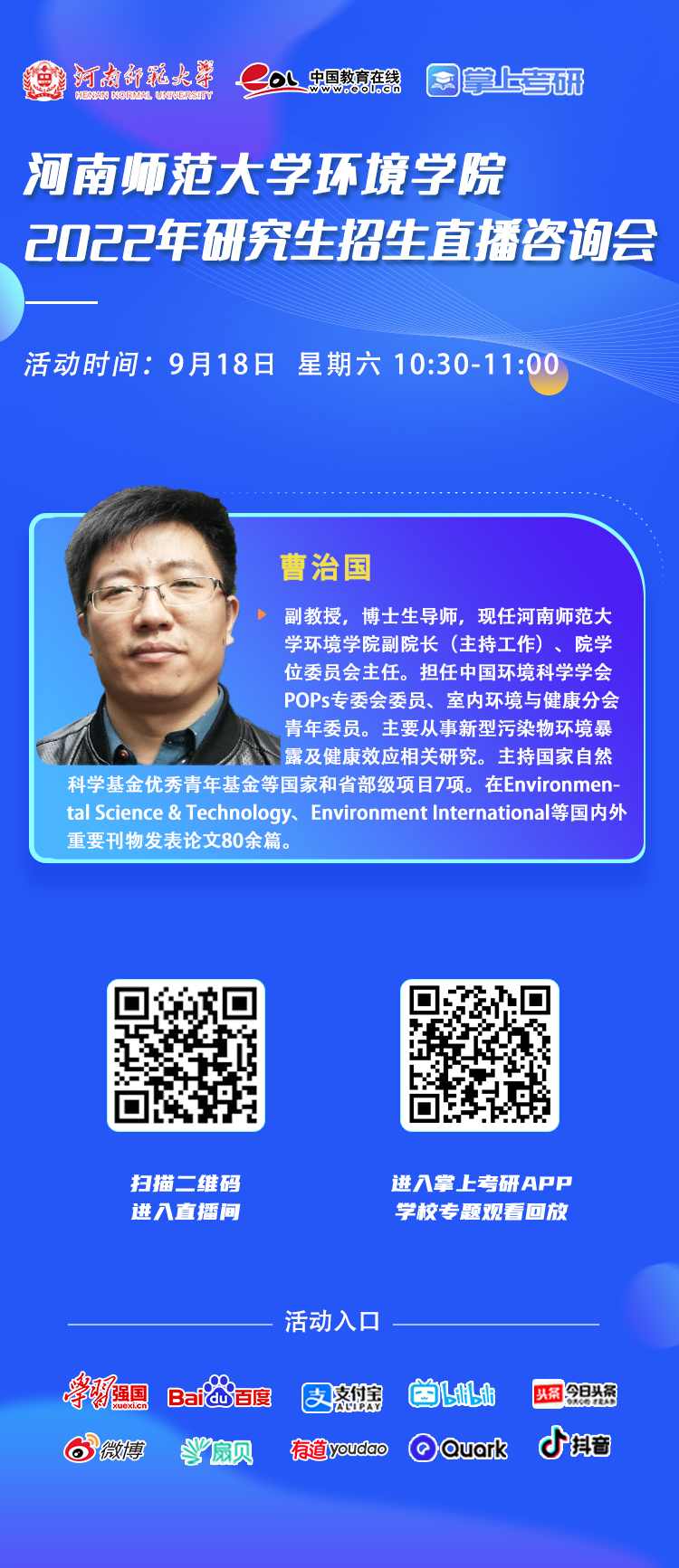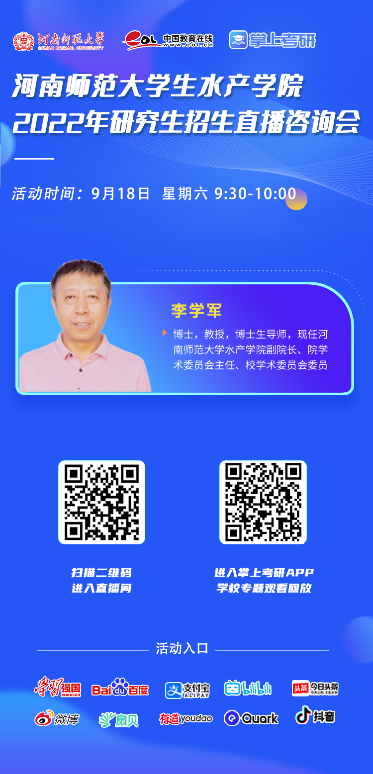本次招生宣讲活动会在中国教育在线考研频道、掌上考研app、学习强国、网易有道、扇贝等同步上线,在支付宝校园频道、微博、B站等均可以观看直播回放,敬请关注!