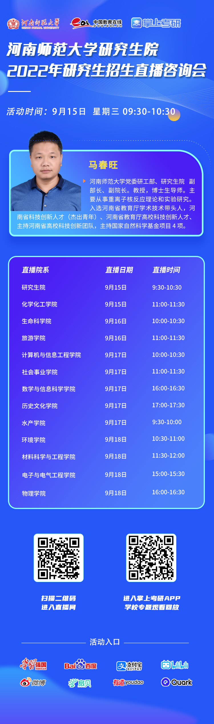 直播预告| 相约河师大,伟德官网下载苹果版2022年研究生招生直播咨询会即将开启!