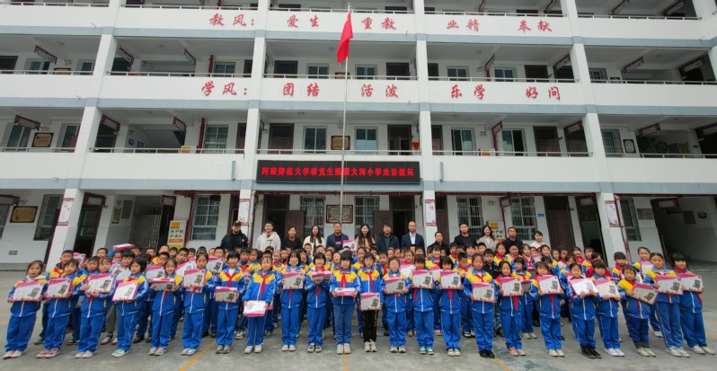 我校积极响应教育部中国研究生乡村振兴志愿服务活动,2022级学科教学(美术)专业研究生谢铭月入选2023年“青春向党 振兴有研”中国研究生乡村振兴志愿服务团队,在大河小学展开为期三个月的志愿服务。志愿服务结束时,我校研究生院代表来到大河小学,对120名学生进行了慰问。慰问活动分为座谈会和捐赠活动两个部分。
