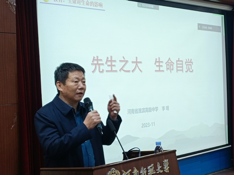 11月15日下午,应我校党委研工部、研究生院的邀请,河南省淮滨高级中学李明校长为我校教育硕士做了一场充满教育家情怀的报告会。报告会在物理学院南楼报告厅举行,研究生院老师和近200名教育硕士一同聆听了此次报告。报告由党委研工部副部长、研究生院副院长马春旺主持。
