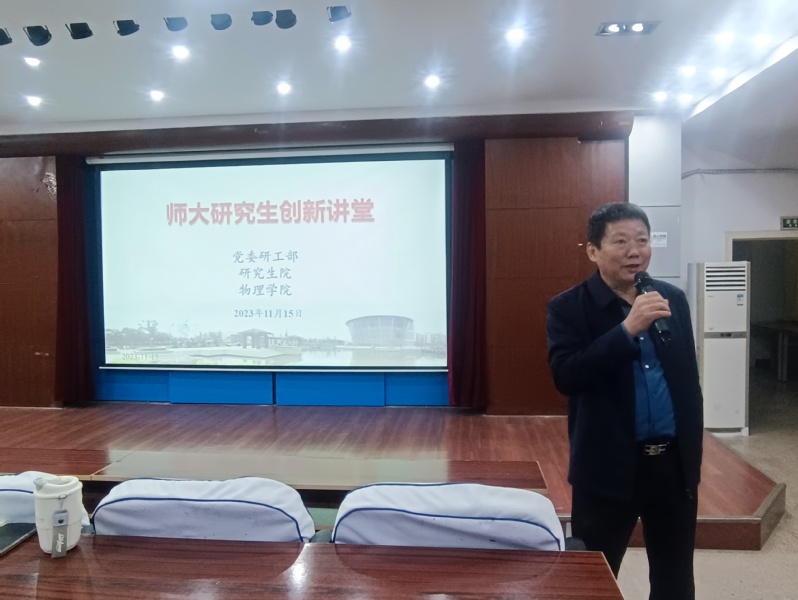 报告伊始,马春旺对李明校长的到来表示欢迎并对其教育成就作了简要介绍。随后,李明校长深情地回忆了三十多年前在物理学院求学时的经历,并以《先生之大生命自觉》为主题,以自身的教学实践和教育管理经验为切入点,结合国家政策要求导向和自身对教育对生命影响的思考,从三个方面展开论述。第一是“何谓大先生”,以三个“点”,进行了详细生动地介绍。第二是“为何大先生”,成就自己、成就学生、成就未来。第三是“如何大先生”,经历三个阶段,用力、用脑、用心,提升“师能”、拓展“师识”。对此,他鼓励教育硕士要争做四有好老师,成为大先生,弘扬教育家精神,建设教育强国,办好人民满意的教育。报告最后,李明校长亲切耐心地解答了同学们提出的问题,详细解释大先生的三个“点”的区别与联系,即在引领中“点燃”、在唤醒中“点悟”、在创造中“点化”,使同学们对大先生以及生命影响和理念有了更加深刻的理解,赢得了在座师生的阵阵掌声。