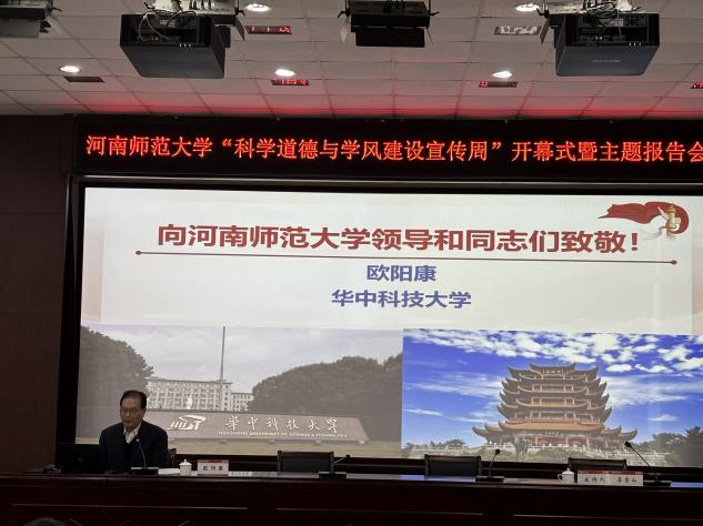 欧阳康教授的主题报告以“站在历史与未来的制高点”为导言,从“加快构建中国特色哲学社会科学自主知识体系;营造良好生态,树立良好学风;提升道德境界,塑造优秀学人以及认清使命与提升境界”四个方面,阐述了高校加强科学道德与学风建设的必要性和重要性,启迪与会师生遵循科学研究规律,履行学者职责,恪守学术道德,永葆诚信品格。