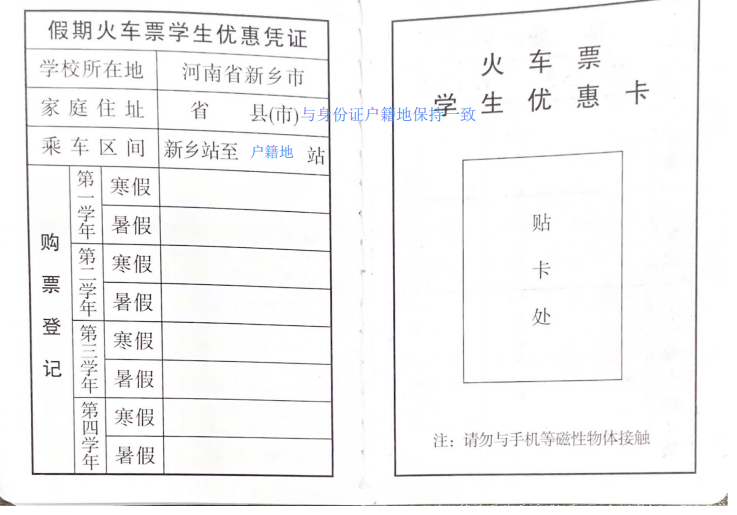 2.火车乘车优惠区间只限家庭所在地不在新乡、且寒暑假往返家校之间需要乘坐火车的学生填写。