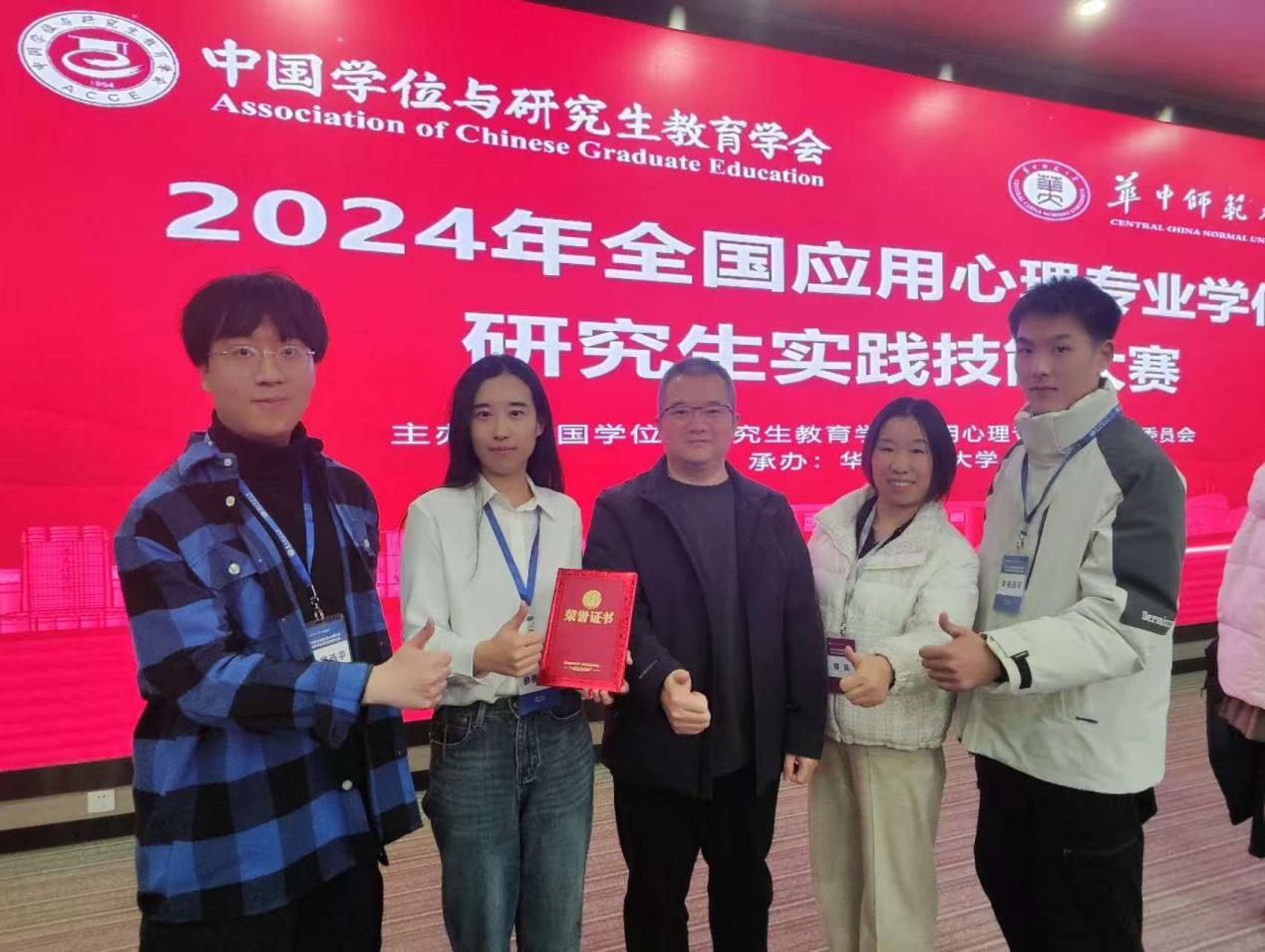为深入贯彻党的二十大精神和全国研究生教育工作会议精神,推动新时代专业学位研究生教育高质量发展,由全国应用心理专业学位研究生教育指导委员会指导、中国学位与研究生教育学会应用心理专业学位工作委员会主办的2024年全国应用心理专业学位研究生实践技能大赛于2024年12月8日在华中师范大学落下帷幕。教育学部心理学院应用心理专业硕士杜若娟、李尚、王一鸣(指导教师:刘小先、孙文梅)团队荣获全国一等奖。