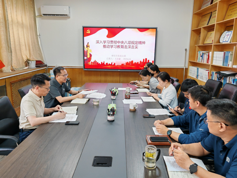 6月12日上午,根据校党委深入贯彻中央八项规定精神学习教育的部署要求,深学细悟中央八项规定及其实施细则精神,切实推动学习教育走深走实,研究生院党支部召开党员大会集中学习有关文件精神,深刻查摆问题,推进整改落实。会议由党支部书记王文豪主持,党支部全体党员参加会议。