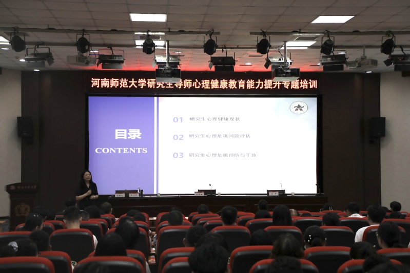 为深入贯彻落实《教育部关于全面落实研究生导师立德树人职责的意见》精神,切实加强研究生导师对研究生心理健康教育的引导与指导,6月25日下午,我校党委研究生工作部、研究生院、学科建设办公室在西校区物理北楼三楼报告厅举办研究生导师心理健康教育能力提升专题培训。郑州大学心理健康教育中心主任、博士生导师刘慧瀛教授应邀作专题报告,各培养单位主管研究生工作的副院(部)长、研究生工作秘书及导师代表共计近三百人参加培训。