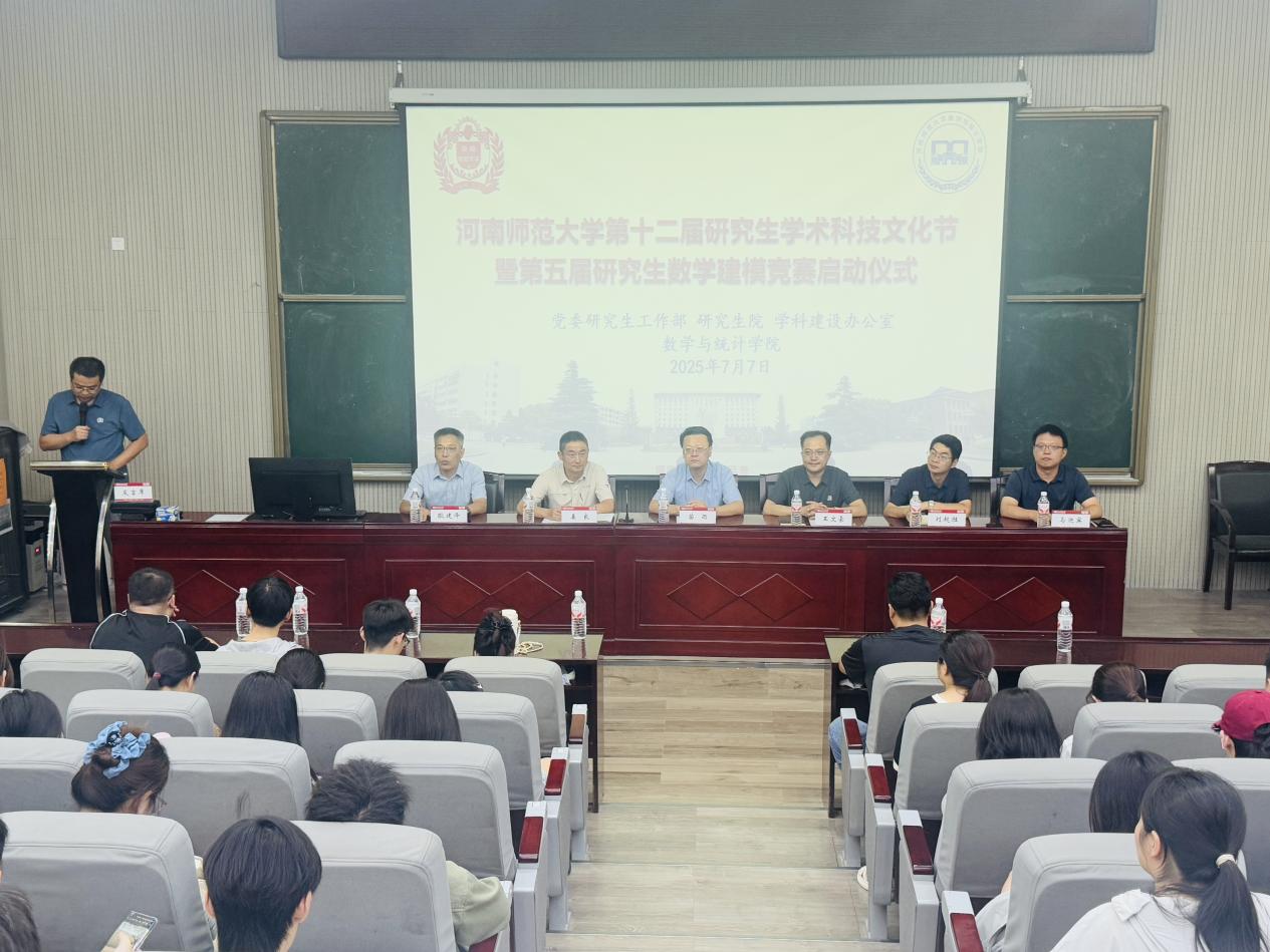 7月7日下午,伟德官网下载苹果版第十二届研究生学术科技文化节暨第五届研究生数学建模竞赛启动仪式在数学与统计学院报告厅成功举行。校党委常委、副校长苗雨出席,党委研工部部长王文豪,相关学院领导、竞赛指导老师及参赛研究生代表参加会议。启动仪式由数学与统计学院党委书记姜良主持。此次活动旨在构建高质量学术实践平台,深化科教融合育人模式,全面提升研究生学术素养与创新实践能力,进一步推动学校研究生教育高质量发展。