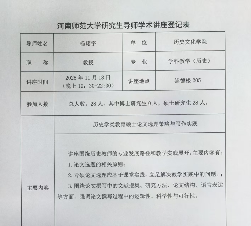 讲座:历史学类教育硕士论文选题策略与写作实践