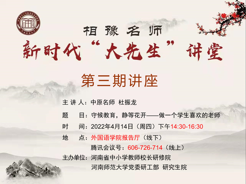 关于召开“相豫名师—新时代大先生讲堂” 第3期讲座的通知