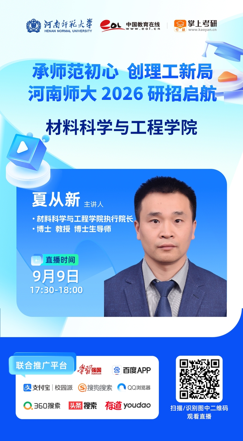 材料科学与工程学院 | 9月9日 | 17:30-18:00 |