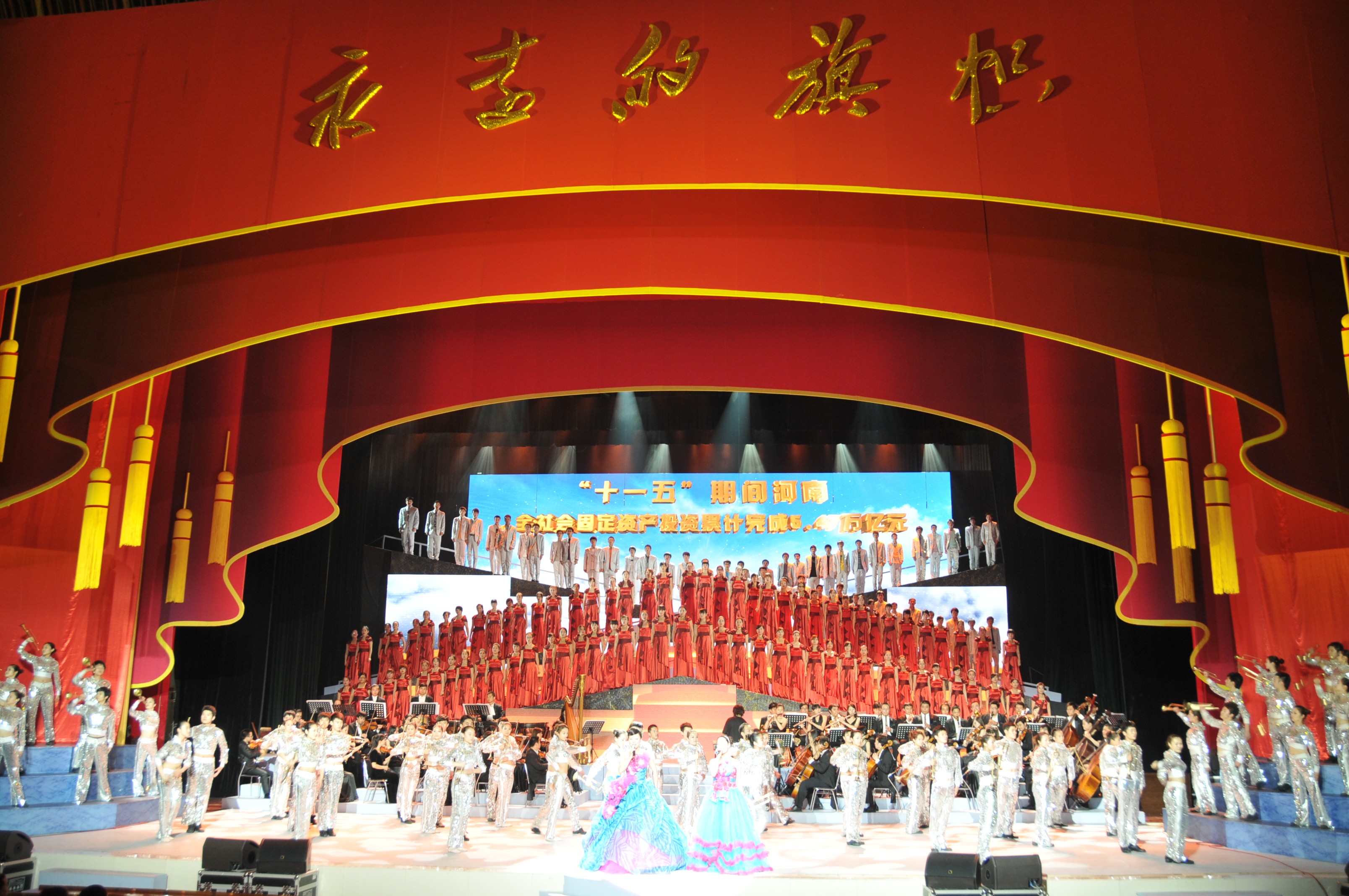 我校帕瓦罗蒂音乐艺术中心合唱团全程参加了演出,共参演了京剧《红灯记》、交响合唱《歌唱大别山》、交响河南坠子《延安和竹沟》、交响合唱《黄河大合唱》、歌曲《七律·中国人民解放军占领南京》、歌曲《中国朝前走》、诗朗诵《走向中原经济区》、歌舞《旗帜颂》等8个节目,是所有参演单位节目最多的单位之一。