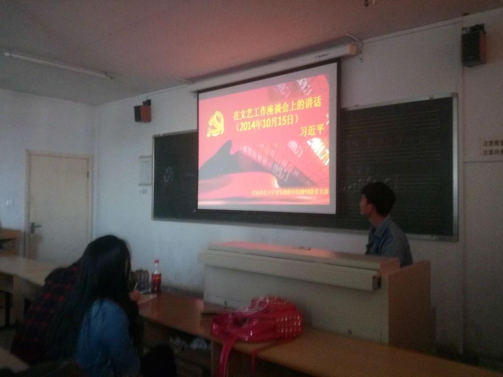 本期学习中,李晋楠同志通过PPT向大家介绍了“习近平在文艺工作座谈会上的讲话”表达了党中央对文艺工作和文艺工作者寄予厚望。并认为文艺批评是文艺创作的一面镜子、一剂良药,是引导创作、多出精品、提高审美、引领风尚的重要力量。接下来带领大家学习了习近平总书记文艺座谈会重要讲话的精神,并观看有关视频。最后由团委书记郭文芳做了最后总结。通过几个星期的学习,支部成员都真正做到将学到的内化于心、外化于行,努力在思想、工作、学习和生活中起到党员的先锋模范作用。