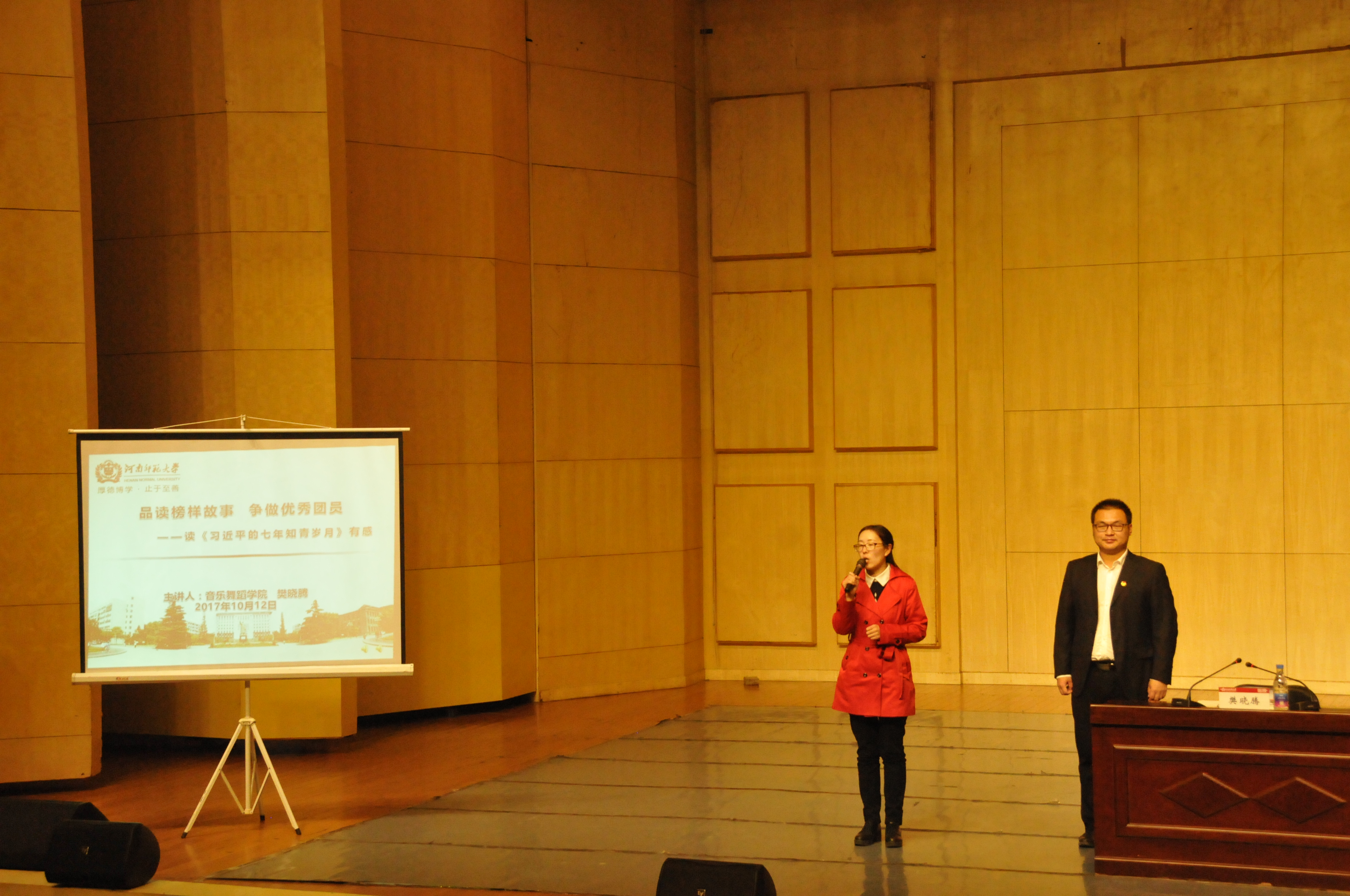 10月12日晚,音乐舞蹈学院于帕瓦罗蒂音乐厅举行“品读榜样故事 争做优秀团员”学习《习近平的七年知青岁月》主题团课。团课邀请校团委创新实践部部长孙晓莅临指导,学院全体辅导员、院团委学生会全体成员、各年级本科生团支委及2017级全体新生共同聆听。本次团课由2017级辅导员王小君主持,院团委书记樊晓腾主讲。