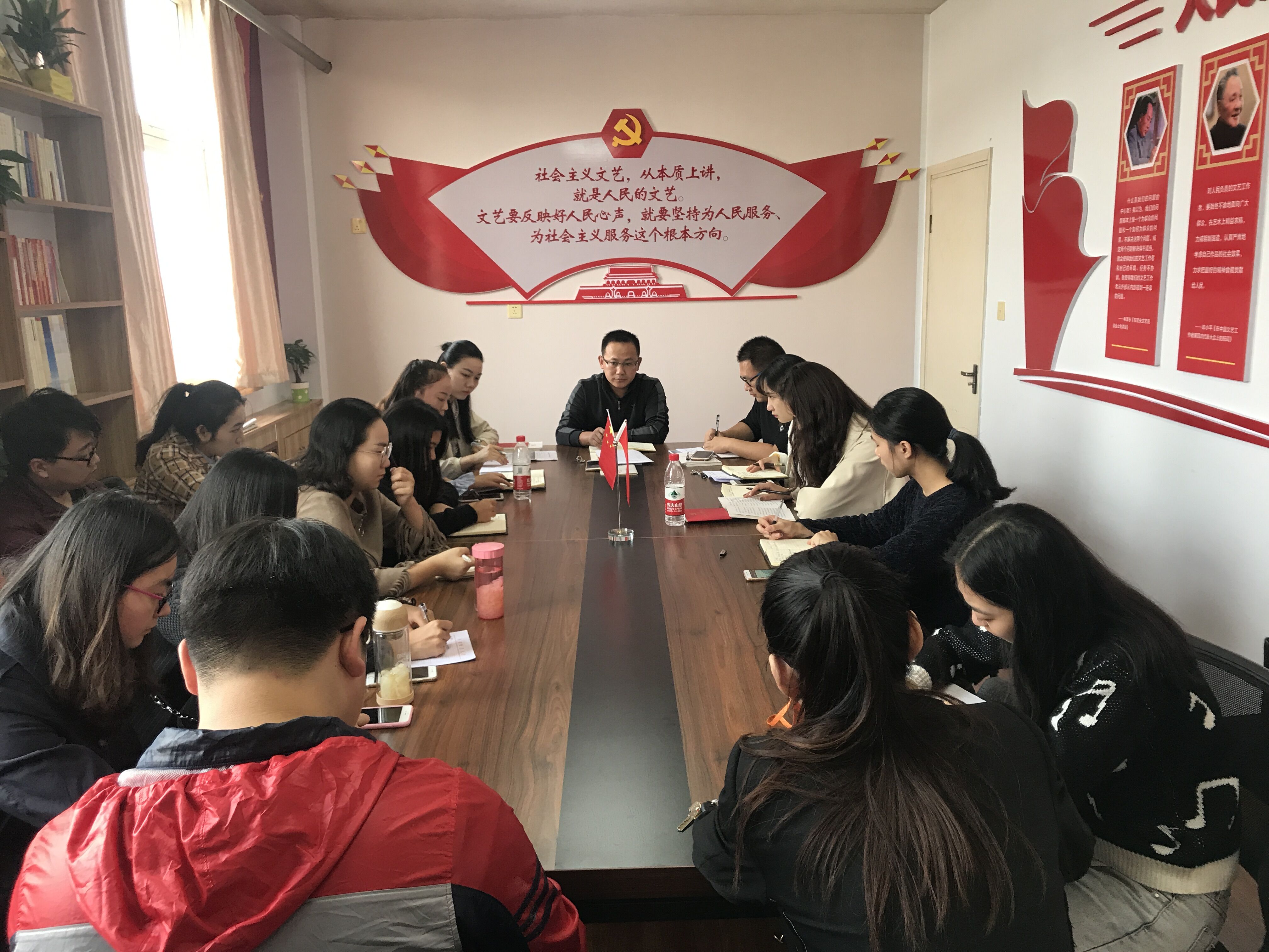 10月28日,我院2014级学生党支部在人民文艺工作坊召开党员大会暨理论学习会, 2014级学生党员参加本次会议。党支部书记樊晓腾主持会议,院党委副书记蒋晋光出席。