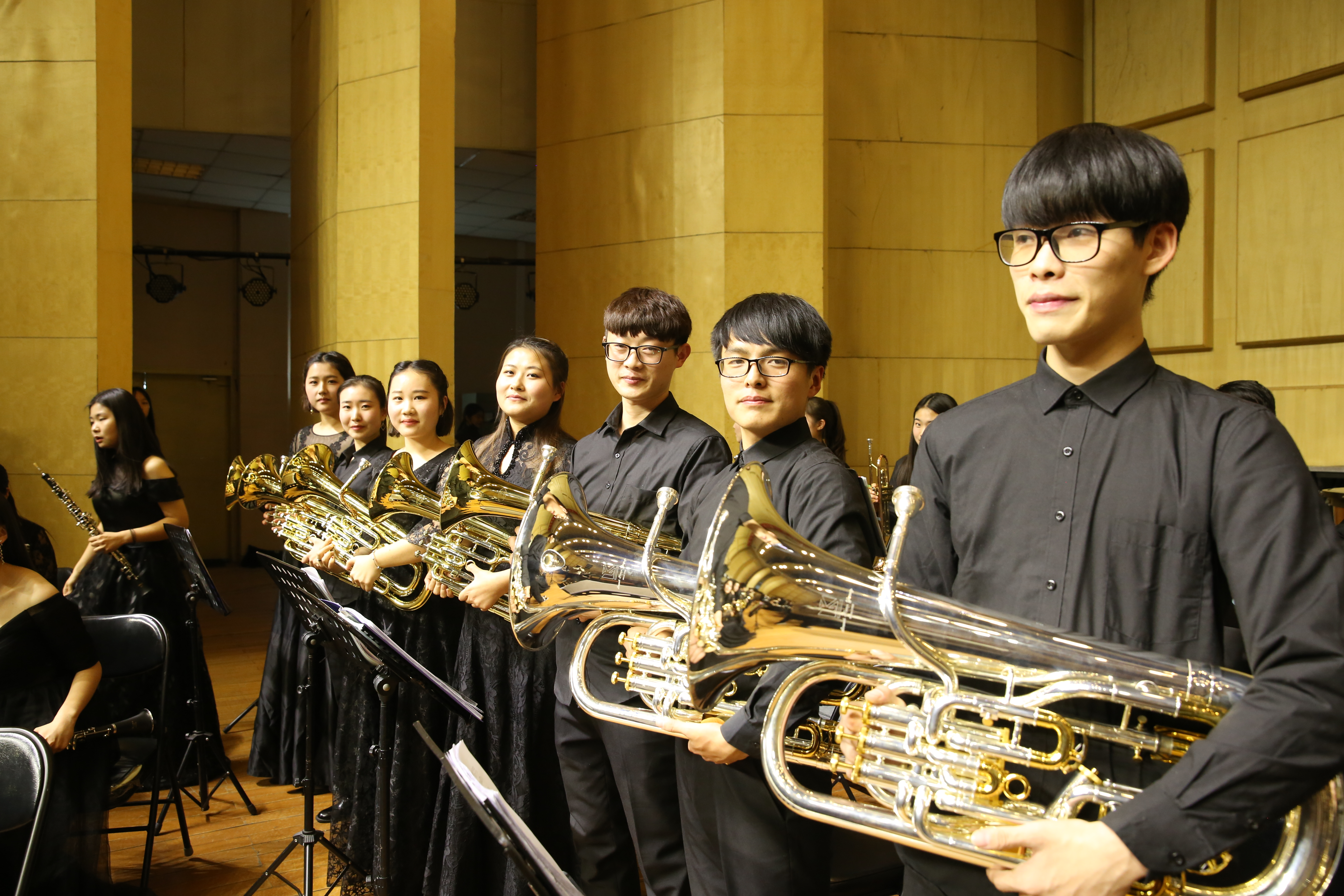 伟德官网下载苹果版管乐交响乐团成立于2016年11月,在我校领导的大力支持和许新建老师的悉心教导下发展迅速,乐团内有大量辅修器乐的学生,他们通过一年多的练习在专业技术和学习能力上都有很大的提高,也促进我校复合型人才的培养,形成复合型人才特色。