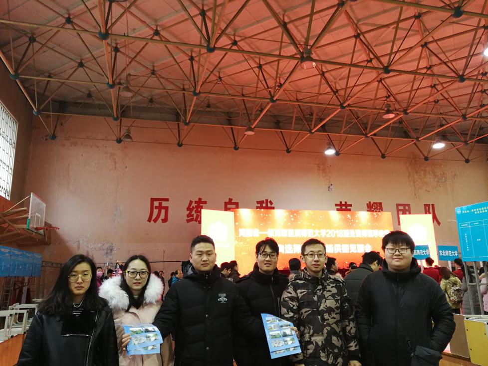 翌日学院组织部分毕业生参加在我校球类馆举行的河南省--教育部直属师范大学2018届免费师范毕业生双向选择就业专场供需见面会。