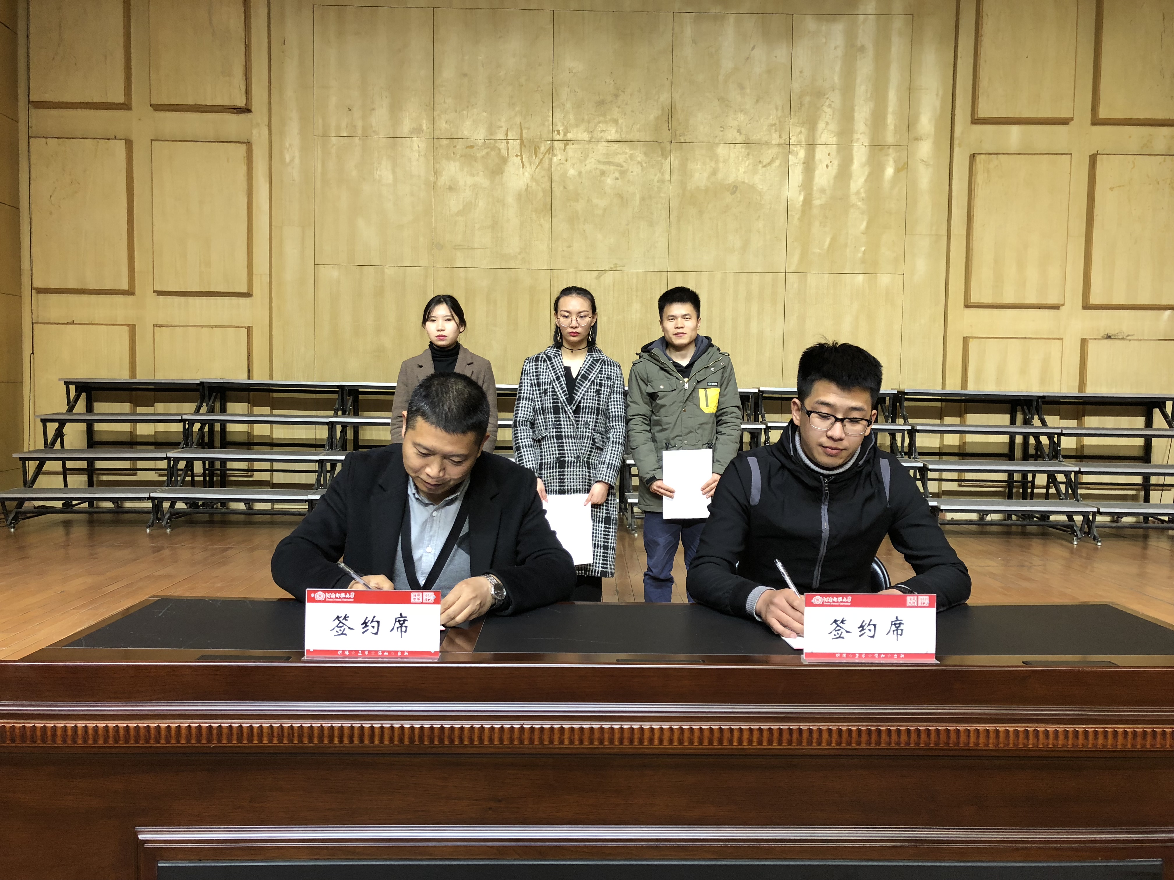 随后,河南太乐文化传播有限公司的董事长董小乐与已达成就业意向的毕业生代表现场签订就业协议书,对我院毕业生专业能力、综合职业能力表示了肯定和垂青,同时,我院已签约的毕业生代表也表示,通过实习、在岗锻炼,不断提高专业和综合能力素养,尽早树立正确的择业观念,很快的找到合适自己的岗位。现场签约仪式为洽谈会营造双赢的气氛,带动毕业生们要求职的决心和信心,赢得用人单位对我院学生专业素养的认同,让我院就业指导工作再上新台阶。