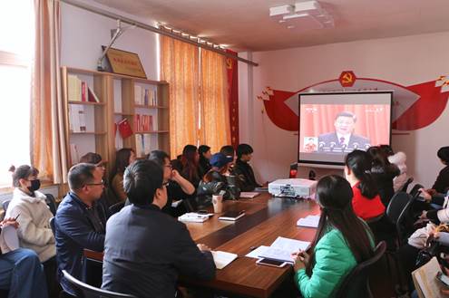 直播期间,全体师生党员聚精会神地观看聆听习近平总书记的讲话,认真做着笔记,听到报告精彩之处自发为之鼓掌,气氛庄严而又热烈。