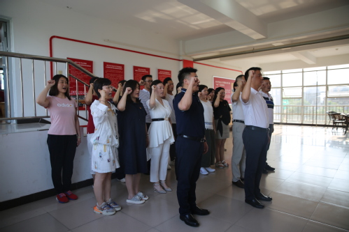 师生党员们面对鲜红的党旗,高举右拳,再次庄严宣誓,重温入党誓词,回顾党的初心,铭记入党承诺,再次接受心灵的洗礼,时刻提醒自己作为一名党员的政治责任和使命担当,深切表达为党的事业奋斗终身的决心和愿望。